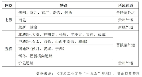 陜晉蒙煤炭東運主要由鐵路運輸,并且集中在北、中、南三大運輸通道上。